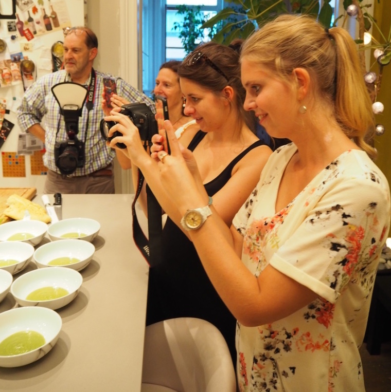 groen soepje en terwijl de blender bezig is, giet je er wat olijfolie bij.